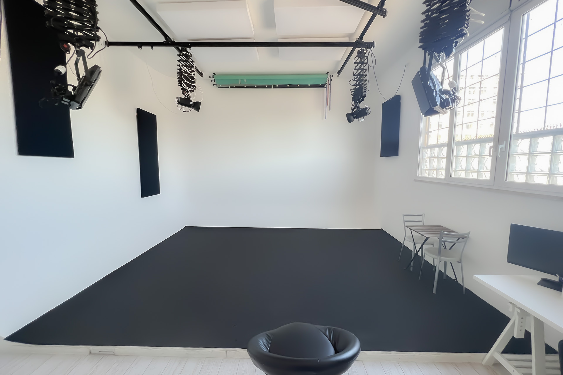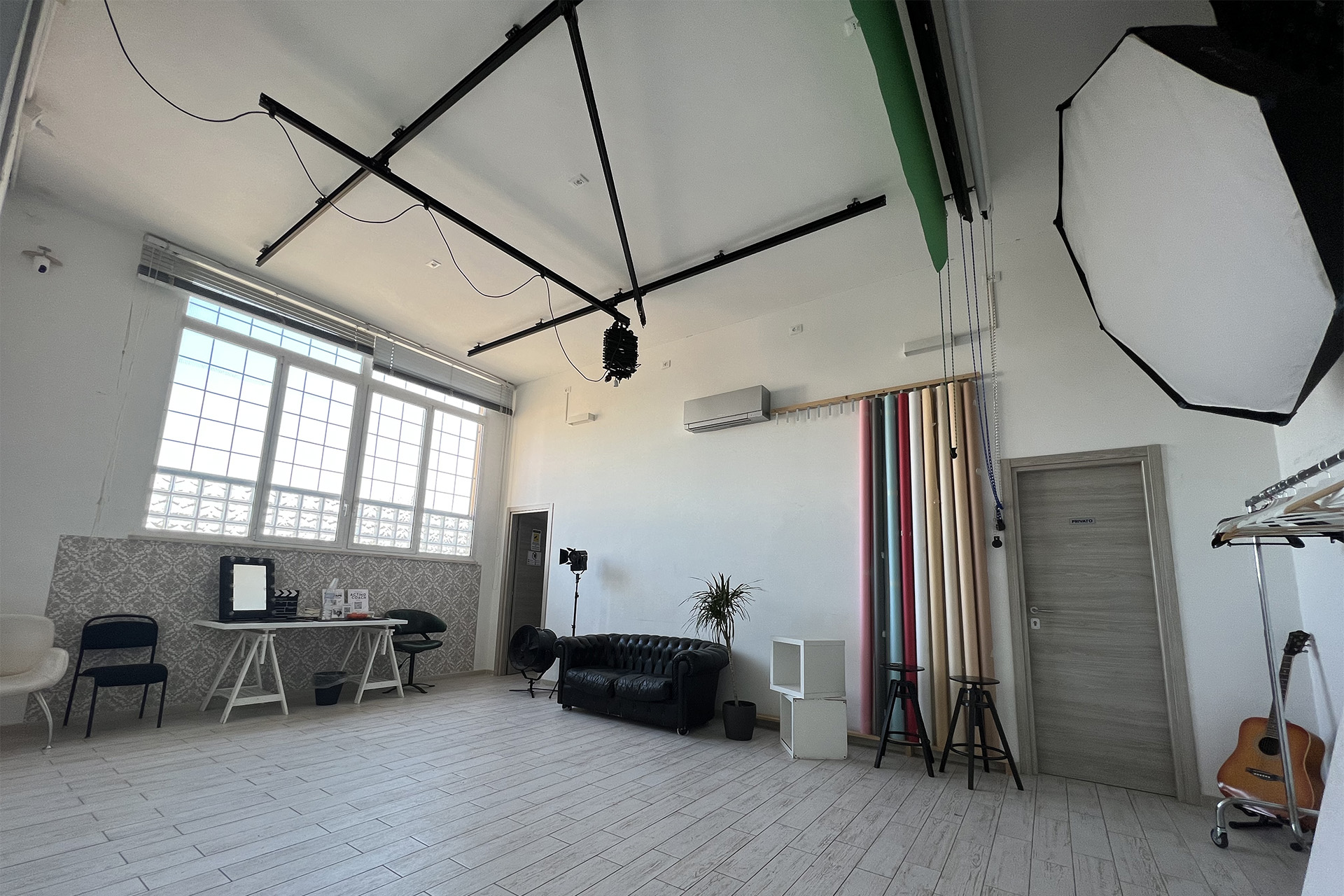 È possibile fare richiesta di uso di tutto lo studio composto da tre spazi in Daylight oscurabili. Uno studio di oltre 100mq con limbo di calpestabilità 4,5 x 6,5 cm, con portafondale da 3 rulli, Impianto Aereo a 5 ponti. Free Wi-Fi con internet in fibra ottica. Stampante led a colori. Impianto elettrico fino a 10kw. Sistema di pannelli acustici senza reverbero. A disposizione postazione trucco, camerino, bagno e cucinino, sala attesa e stand per abiti. Lo studio ha una capienza massima per 30 persone.